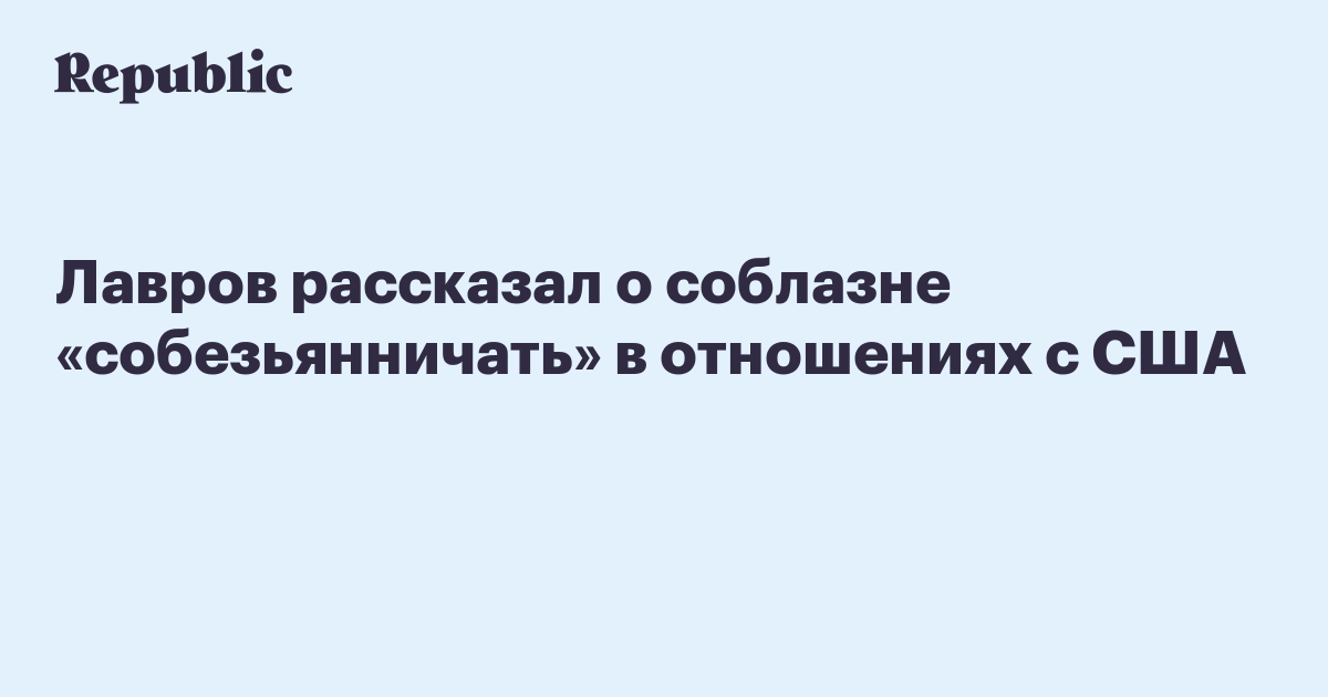 Лавров рассказал о соблазне «собезьянничать» в отношениях с США