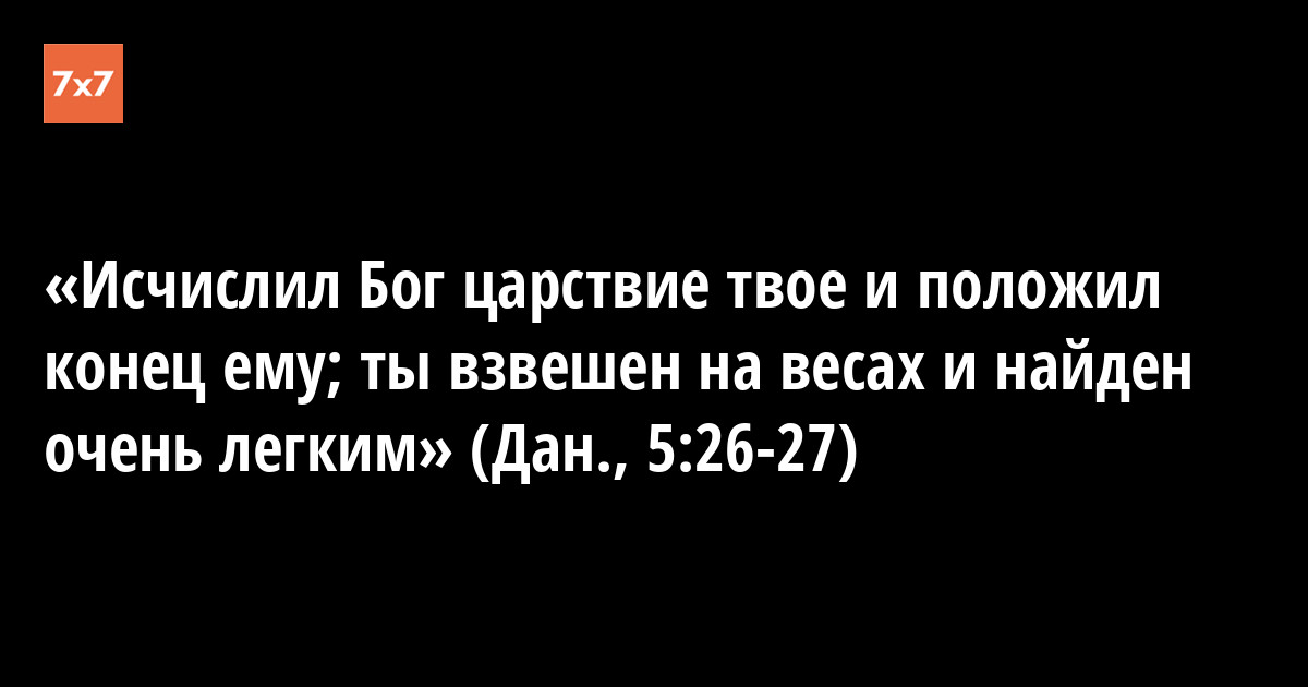 «Исчислил Бог царствие твое и положил конец ему; ты взвешен на весах и найден очень легким» (Дан., 5:26-27)