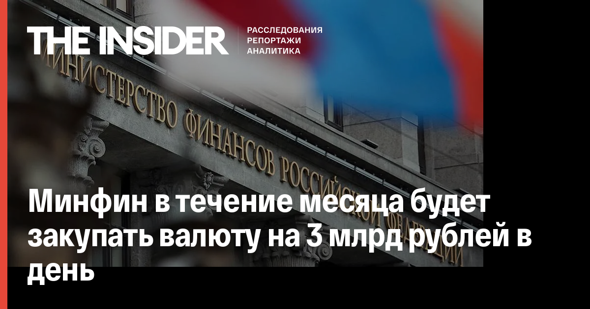 Минфин в течение месяца будет закупать валюту на 3 млрд рублей в день