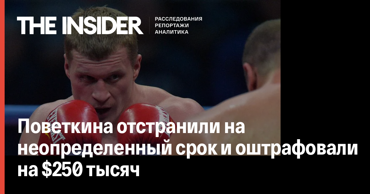 «WBC отстранил Александра Поветкина на неопределенный срок и оштрафовал его на $250 тысяч», - говорится в сообщении. Также отмечается, что российский боксер через год может подать заявку на восстановление членства в организации. Позже это сообщение появилось в твиттере самого WBC.