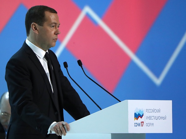 Медведев на инвестиционном форуме в Сочи-2017 alrf.ru Глава правительства России Дмитрий Медведев считает, что «погода» в российской экономике изменилась, она перешла от падения в стадию роста. В свою очередь, Минэкономразвития готовится пересмотреть сценарий развития экономики страны на 2017 год и ожидает ускорение роста ВВП с прогнозируемых 0,6% до 2%.