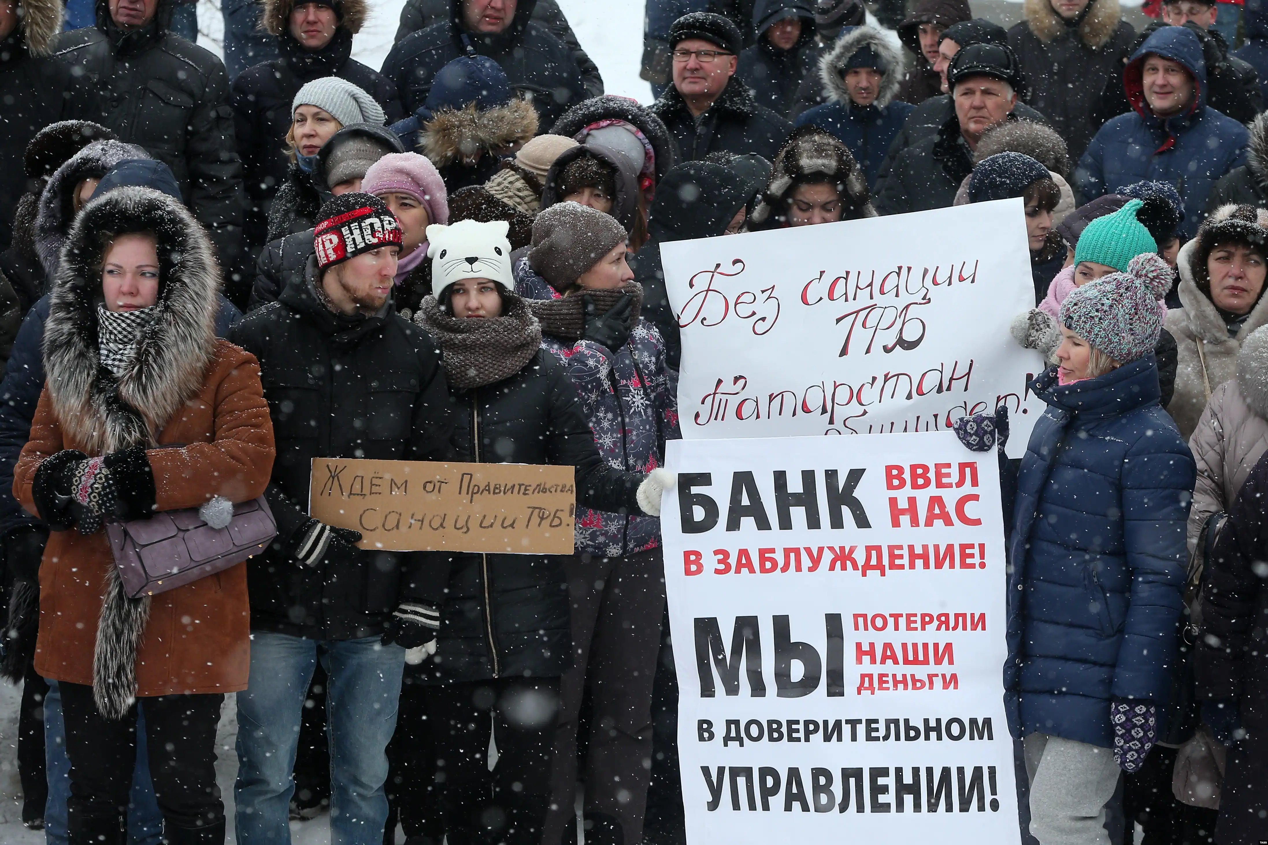 В субботу утром клиенты банков, чьи лицензии накануне были отозваны Центробанком, собрались в Торгово-промышленной палате Татарстана, чтобы выработать совместный план действий. На встречу пришли заместители министров юстиции, экономики, представитель Налоговой службы и глава Фонда поддержки предпринимательства Андрей Афонин. Клиенты пытались выяснить у них, что делает для разрешения ситуации республика и как им теперь получить свои деньги. Не дождавшись ответов, около трехсот собравшихся отправились в кабинет министров, где передали свой ультиматум лично в руки премьер-министра республики Ильдара Халикова. Об этом сообщила корреспондент сайта "Idel.Реалии".