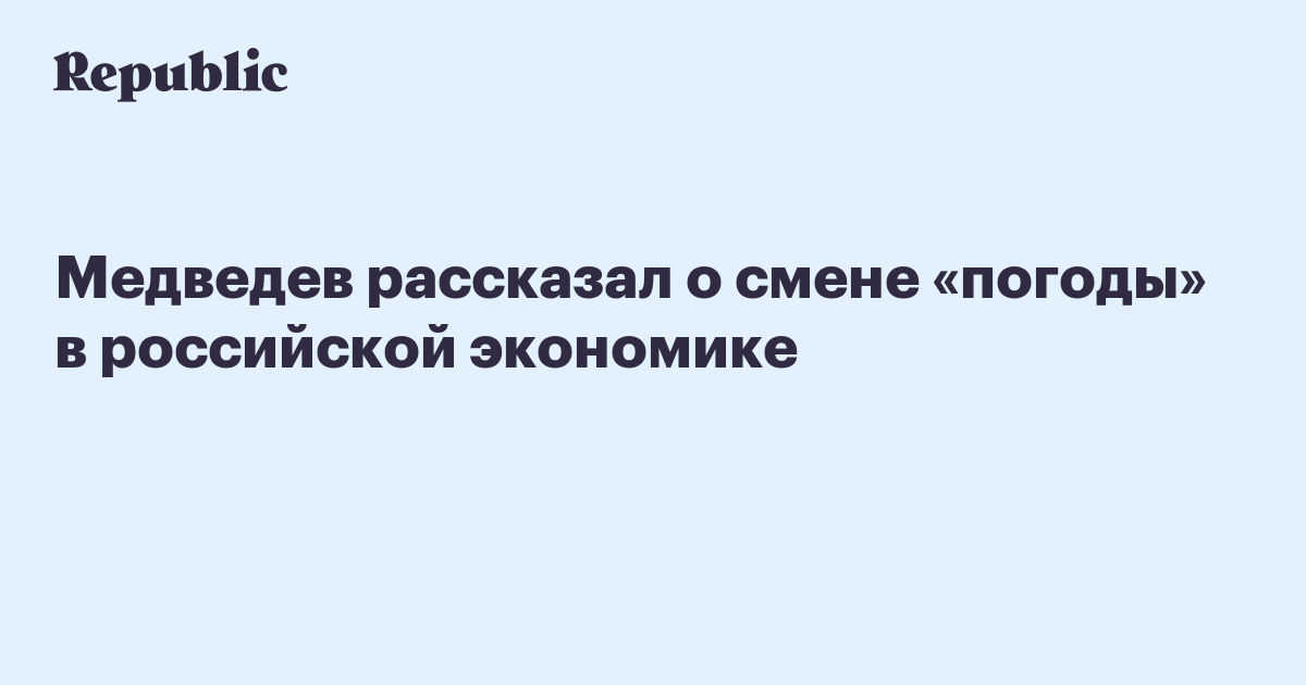 «Погода» в российской экономике меняется, сказал глава правительства РФ Дмитрий Медведев в интервью программе «Вести в субботу с Сергеем Брилевым» на «России 1».