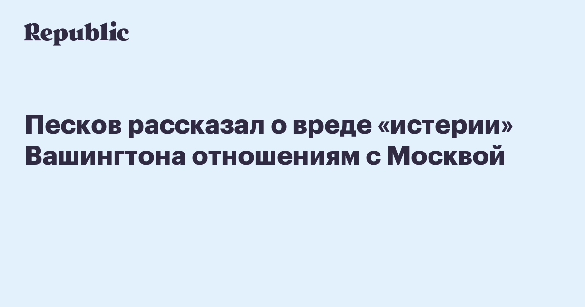 Песков рассказал о вреде «истерии» Вашингтона отношениям с Москвой
