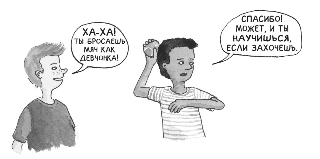 Когда мальчишки хотят обидеть друг друга, они говорят: «Ты бросаешь мяч, как девчонка.» —«Ты бегаешь, как девчонка».