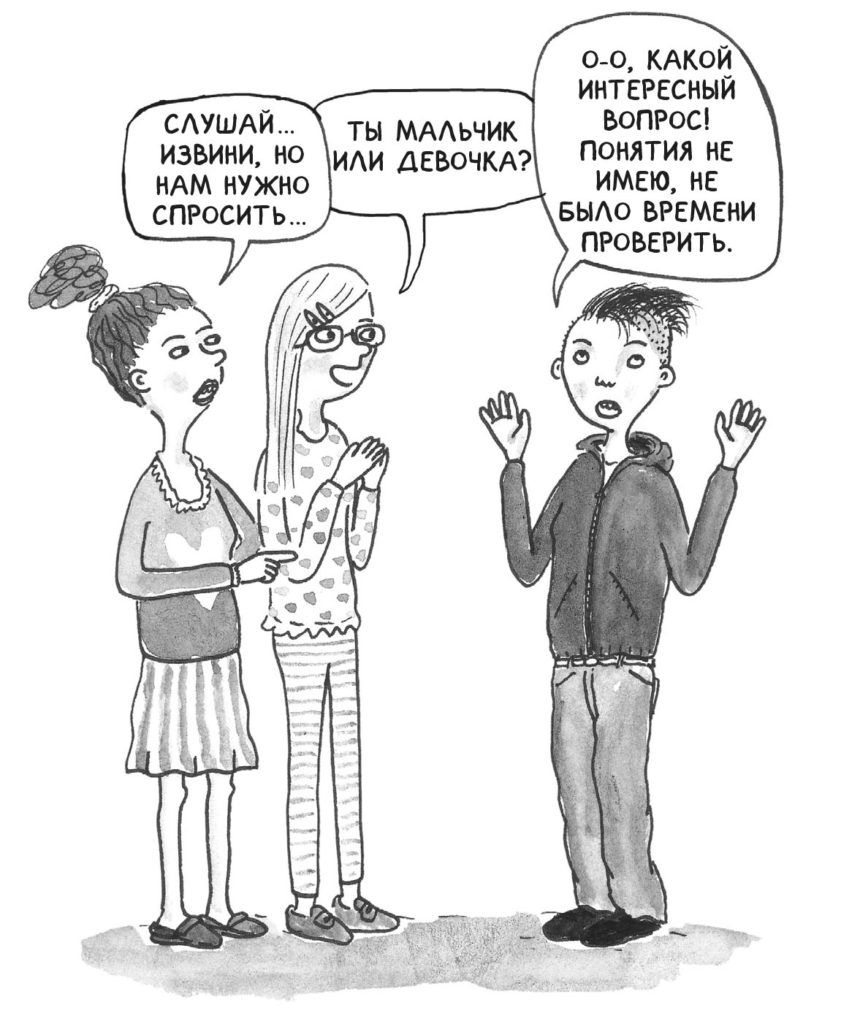 ©Издательство Albus Corvus Иногда по человеку не очень поймешь, мужчина это или женщина. Тогда часто начинают любопытствовать, просто потому, что обычно принадлежность к тому или иному полу видна сразу. Пол — важная часть самоопределения, о нем трудно не думать.