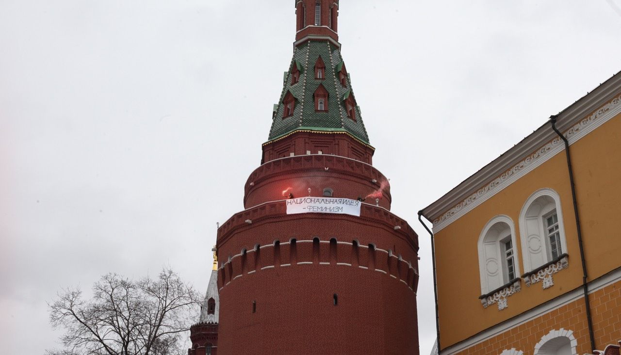 Феминисток обвинили в том, что их акция на Угловой Арсенальной башне Кремля — фотошоп. Они признались в фальсификации