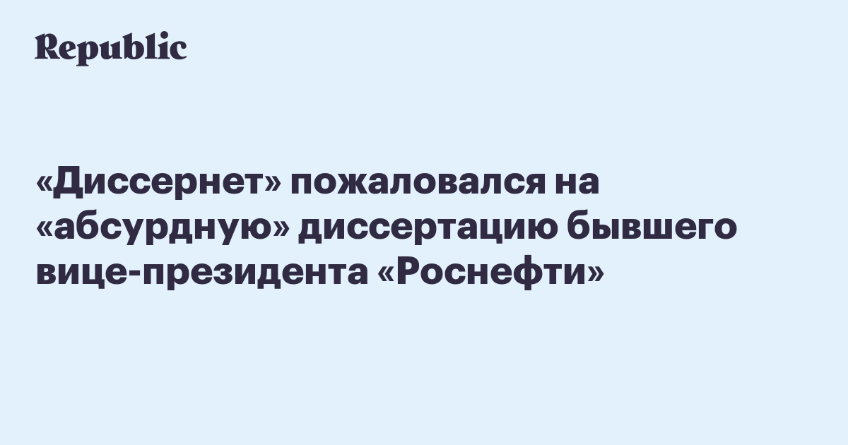 «Диссернет» пожаловался на «абсурдную» диссертацию бывшего вице-президента «Роснефти»
