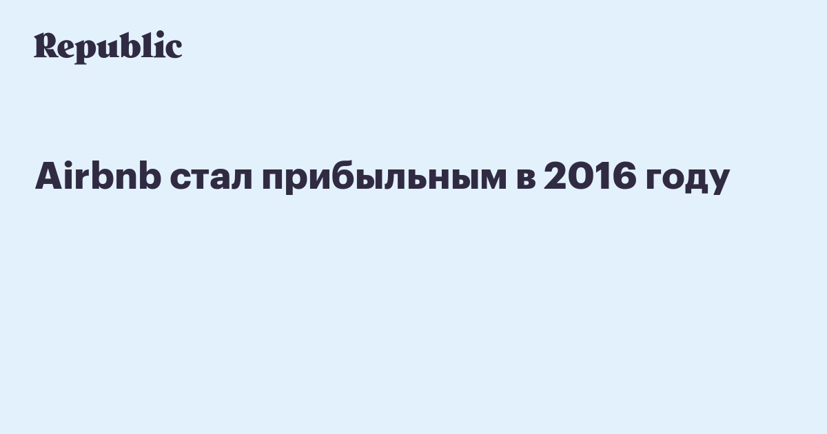 Как рассказал источник, близкий к компании, Airbnb зафиксировал прибыль во втором квартале 2016 года, впервые в своей истории. Сервис ожидает получать прибыль на протяжении всего 2017 года, добавил собеседник издания.