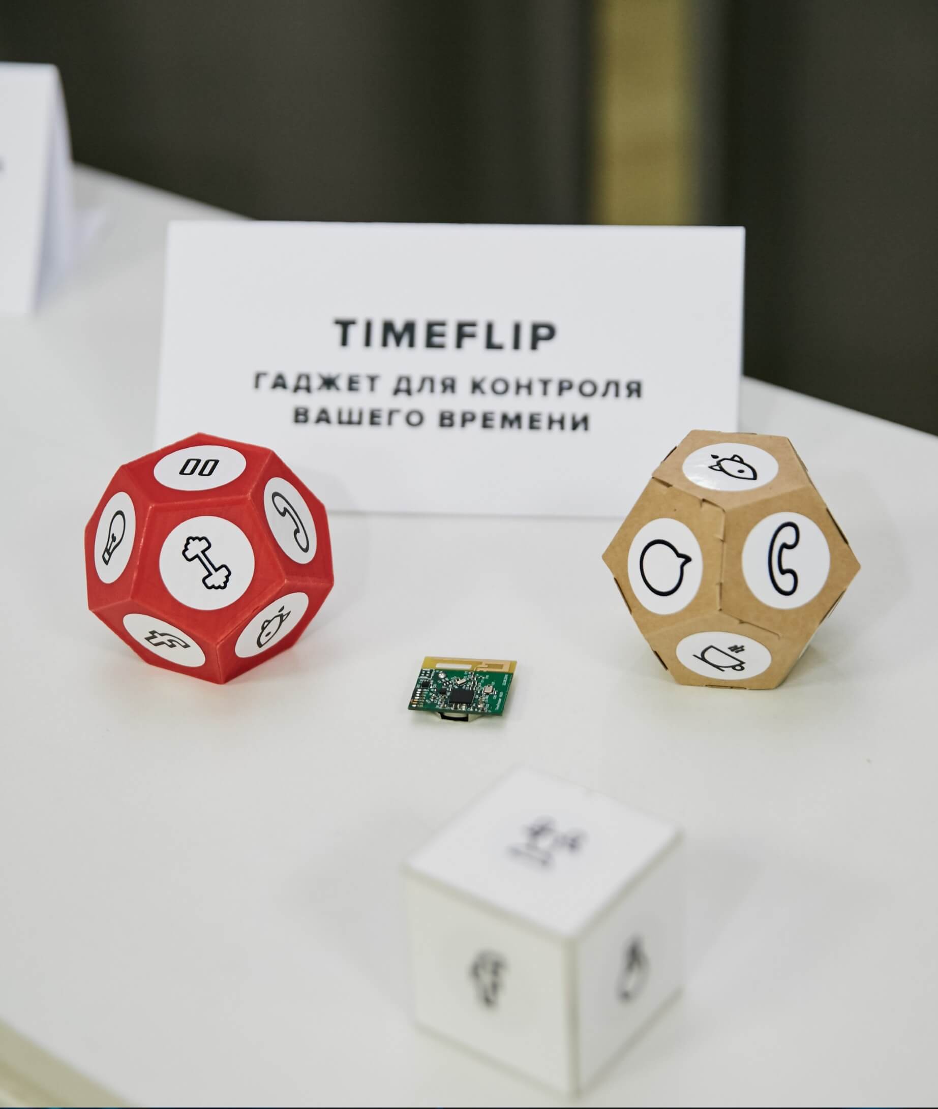 Победителем народного голосования стал проект TimeFlip, который представил гаджет для учета времени в виде многогранника. На поверхностях этой фигуры записаны задачи. Когда владелец гаджета выполнит какую-то из них, он переворачивает многогранник. А время выполнения работы автоматически зафиксируется в выбранном сервисе тайм-трекинга.
