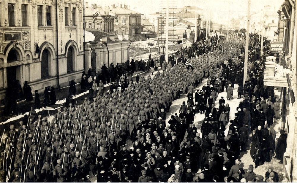 5 марта по Почтамтской улице церемониальным маршем в полном составе прошел 32 Сибирский пехотный полк. Сопровождающий оркестр исполнял "Марсельезу", самую популярную песню той поры (был вариант исполнения на русском языке). Солдаты несли красные знамена с надписью: «Да здравствует Республика». За военными шли толпы ликующего народа.