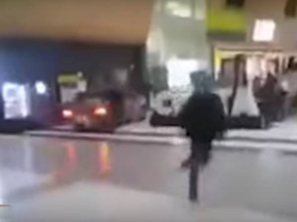 Из здания он выехал, пробив противоположную стеклянную стену терминала. На привокзальной площади нарушитель был задержан.