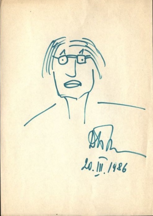 Автопортрет издателя Дмитрия Волчека, нарисованный фломастером на бумаге в 1986 году, продали на аукционе за десять тысяч рублей. Об этом сообщается на сайте аукционного дома «Антиквариум».