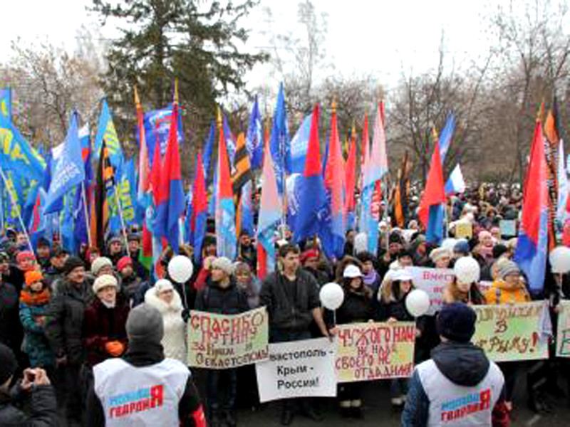 Томский госуниверситет обязали согнать на митинг в честь присоединения Крыма сотни студентов с плакатами "Счастливы вместе!"