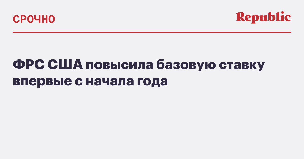 Федеральная резервная система (ФРС) США на заседании 14–15 марта подняла базовую ставку впервые в 2017 году. Как сообщается в пресс-релизе регулятора, ставка установлена на уровне 0,75–1%.