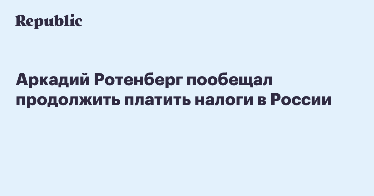 Аркадий Ротенберг пообещал продолжить платить налоги в России