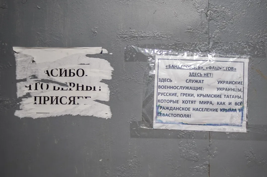 Надписи на заборе одной из украинских военных частей в Севастополе. 21 марта 2014 года.