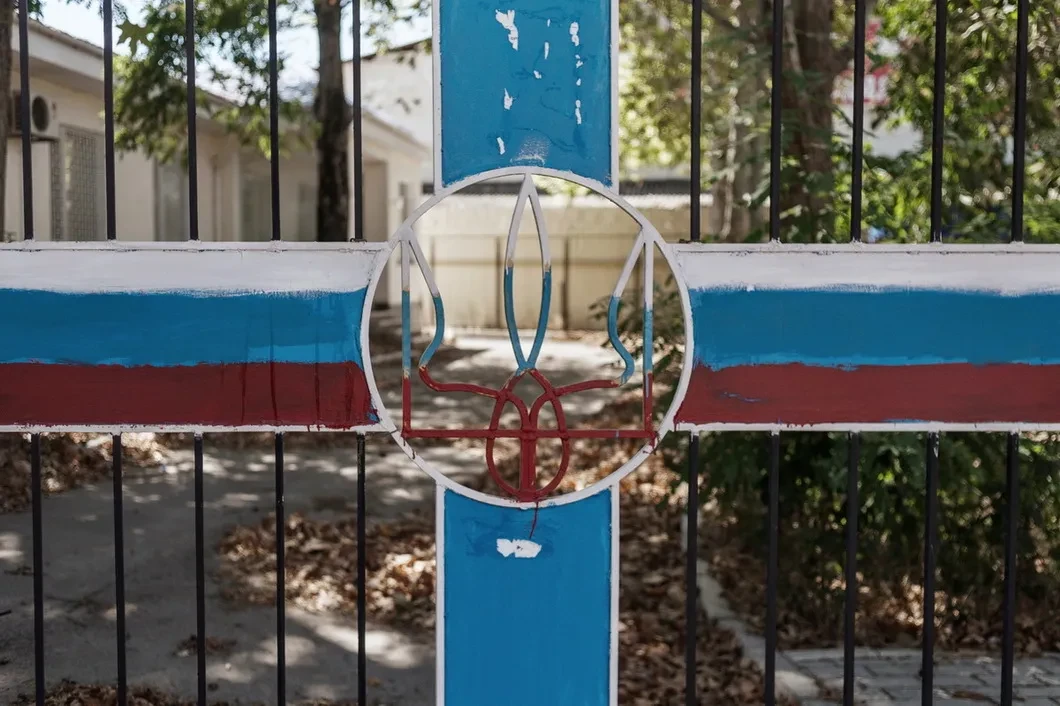 Забор штаба военно-морских сил Украины в Севастополе спустя 5 месяцев после присоединения Крыма к России. 29 августа 2014 года.