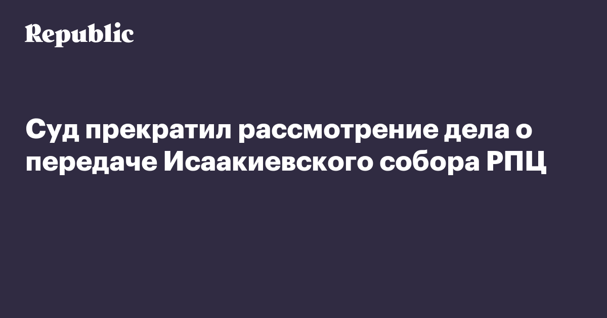 Смольнинский районный суд Санкт-Петербурга прекратил рассмотрение иска, в котором оспаривалась передача Исаакиевского собора в пользование РПЦ. Об этом сообщает «Интерфакс».