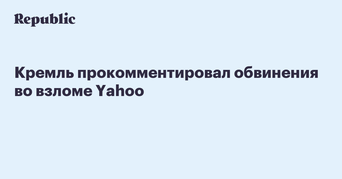 Россия не получала официальных обвинений от ведомств США во взломе Yahoo. Кремль узнал об обвинениях в адрес сотрудников ФСБ и российского хакера из СМИ, добавил Песков.