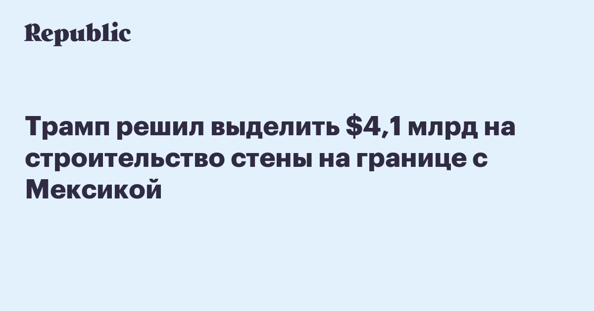 Президент США Дональд Трамп предлагает выделить $4,1 млрд из бюджета на строительство стены на границе с Мексикой. Об этом Reuters сообщил источник в Конгрессе.