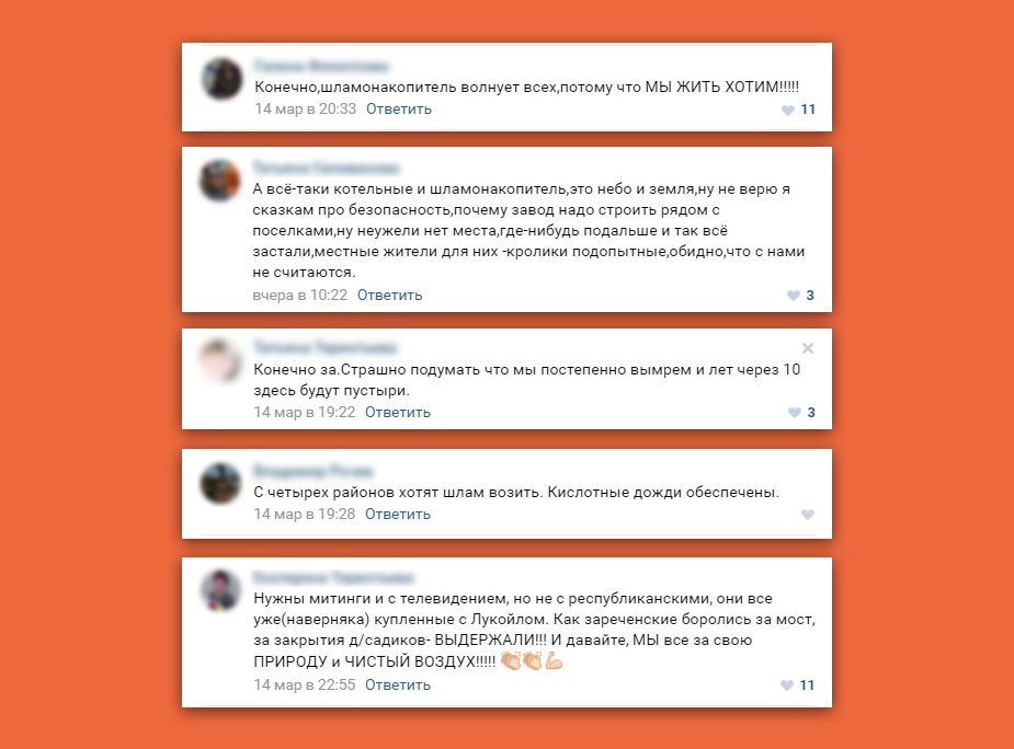 Соцсеть «ВКонтакте», где также обсуждается строительство полигона, пестрит гневными комментариями. 5 марта там был зарегистрирован новый паблик «Защита природы», который призывает запретить шламонакопитель рядом с населенными пунктами, а местным жителям предлагает объединиться для борьбы.