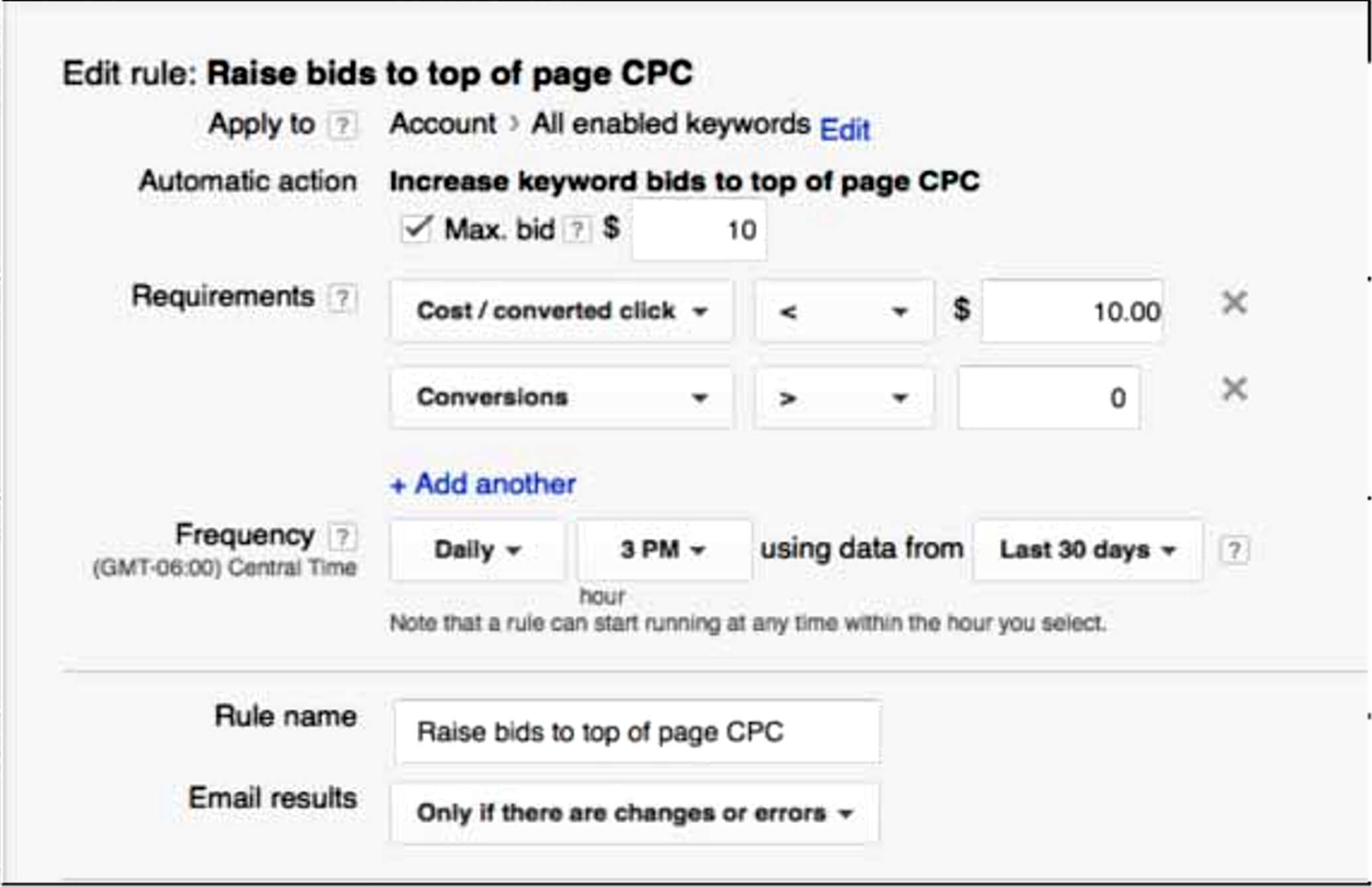 На платформах типа AdWords есть множество элементов автоматизации. Они помогут вам оптимизировать процесс на постоянной основе. Поймите меня правильно! Я не предлагаю поставить весь процесс «на автопилот» и не утверждаю, что автоматизация все сделает за вас. Но есть несколько основных рычагов, которые можно установить в автоматическом режиме, сэкономив себе время.