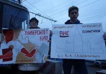Участники согласованной акции стояли с плакатами "Университет - наш", "Политическим фестивалям не место в храме науки", "МГУ - это мы", "Университет не декорация", "МГУ не ВВЦ". Студенты выступили против использования имени МГУ в политических целях. Кроме того, участники акции потребовали ограничить проведение массовых мероприятий в непосредственной близости от Главного здания МГУ, восстановить клумбы, закрытые к митингу деревянными щитами, и вернуть переданную Парку Горького территорию перед Главным зданием под контроль МГУ.
