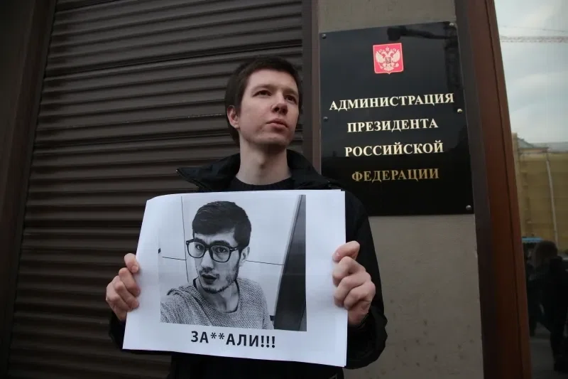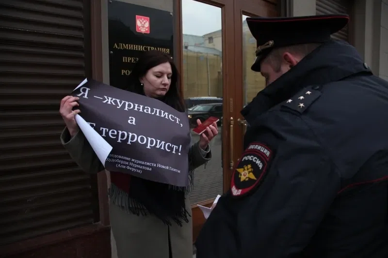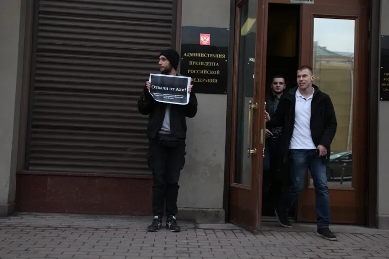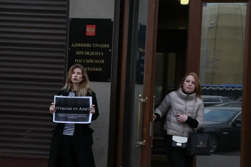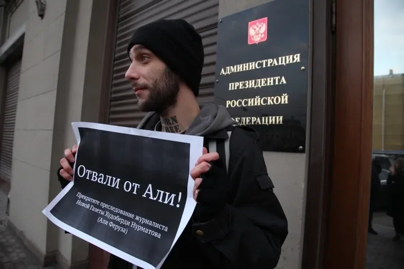 У здания администрации президента в Москве проходят одиночные пикеты в поддержку журналиста «Новой газеты» Али Феруза, задержанного накануне по подозрению в нарушении иммиграционных правил.