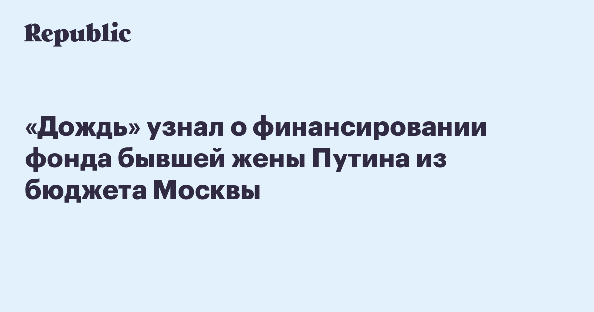 «Дождь» узнал о финансировании фонда бывшей жены Путина из бюджета Москвы
