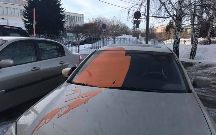 Координатору томского штаба Навального запенили дверь и облили автомобиль краской