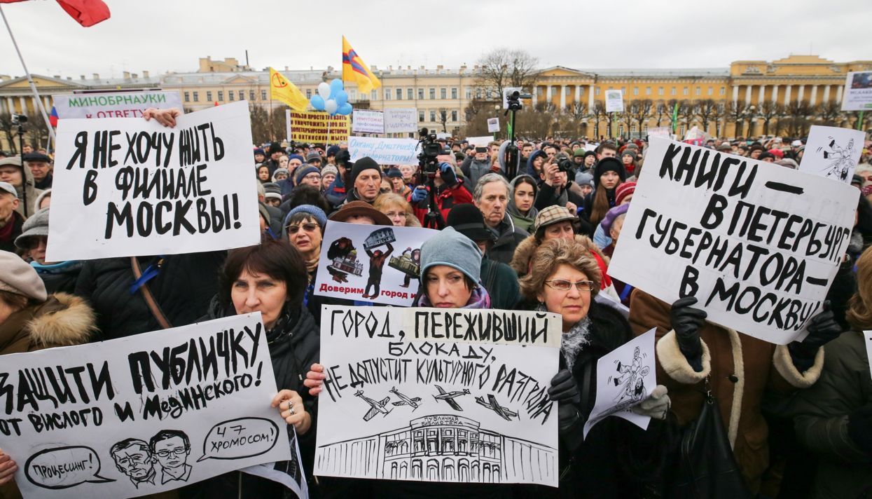 18 марта в Санкт-Петербурге прошел «Марш в защиту города» — на Марсовом поле собрались не менее трех тысяч человек (по оценке «Фонтанки; организаторы заявили о 10 тысячах). Они выступали не только против передачи Исаакиевского собора Русской православной церкви — обсуждались еще две темы: возможное слияние крупнейших библиотек, РГБ и РНБ, и жилищное строительство в защитной зоне Пулковской обсерватории. Митингующие — особенно много среди них было студентов и деятелей культуры — вспомнили и мост в Петербурге, названный именем Ахмата Кадырова. «Медуза» рассказывает, что происходило на протестной акции.