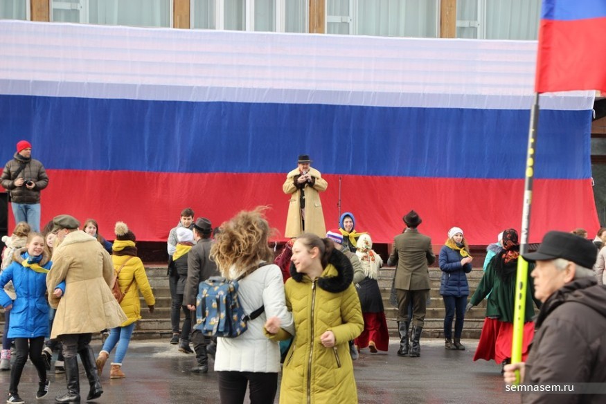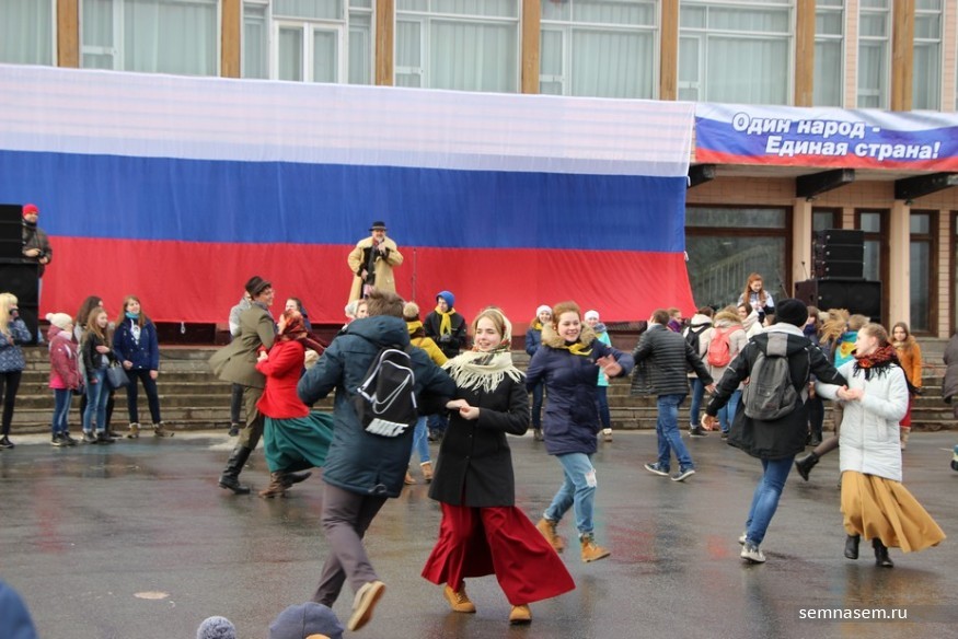 По периметру праздника группы молодежи, не участвовавшие в гуляниях, развлекались как могли: в основном глазели на танцующих и сами приплясывали на месте, пытаясь не замерзнуть. Поскольку молодых людей, не перешагнувших порог совершеннолетия, было явно больше, чем людей старшего поколения (многочисленные муниципальные служащие, региональные чиновники и депутаты всех уровней не в счет — они на работе), корреспондент «7x7» обратился с вопросами о смысле праздника именно к ним.
