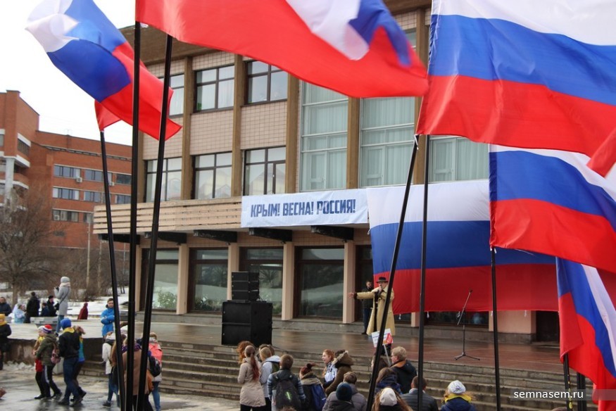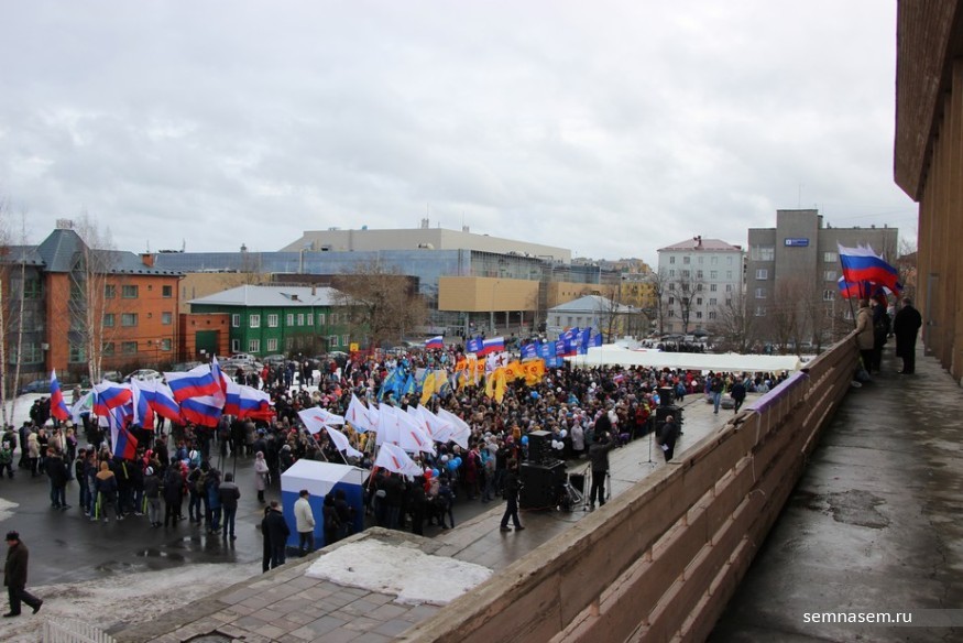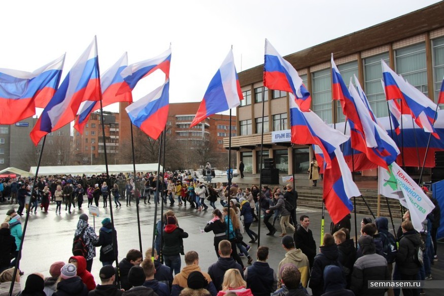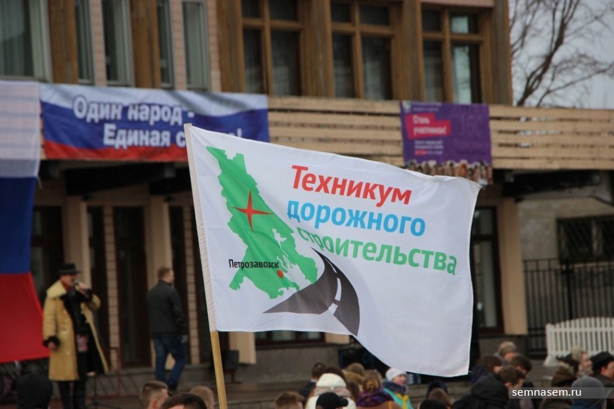 Второй год подряд митинг-концерт в честь присоединения Крыма прошел не на одной из площадей Петрозаводска, а на площадке у республиканского Дома творчества детей и юношества, бывшего Дворца пионеров. 18 марта корреспондент «7x7» побывал на празднике.