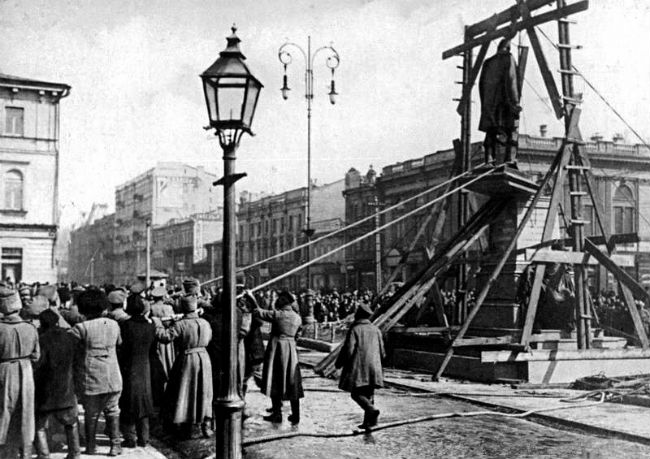 Свержение памятника Петру Столыпину на Думской площади 19 марта 1917 года