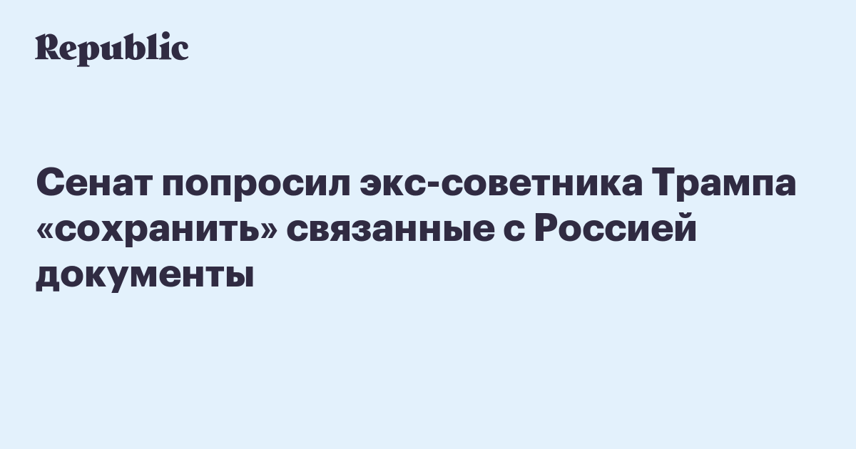 Сенат попросил экс-советника Трампа «сохранить» связанные с Россией документы