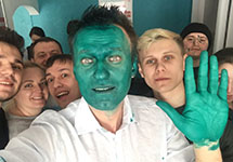 Лидера Партии прогресса Алексея Навального, приехавшего открывать предвыборный штаб в Барнауле, облили зеленкой. Об этом сам политик написал в своем твиттере.