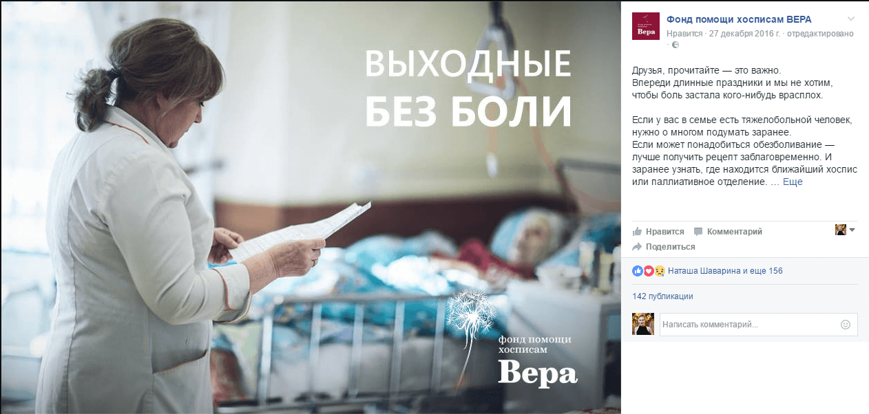 Изображение: скриншот со страницы фонда в Facebook www.facebook.com/hospicefund.ru