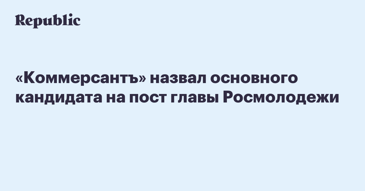 «Коммерсантъ» назвал основного кандидата на пост главы Росмолодежи