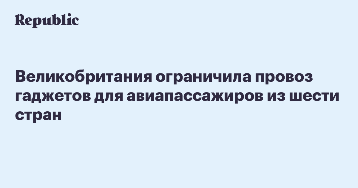 Мера распространяется на пассажиров из Турции, Ливана, Иордании, Египта, Туниса и Саудовской Аравии. Гражданам этих стран, летящим прямыми рейсами в Великобританию, запрещено проносить в самолет телефоны, ноутбуки или планшеты, размеры которых по длине, ширине и высоте превышают 16 х 9,3 х 1,5 сантиметра. Такие устройства необходимо регистрировать в багаже.