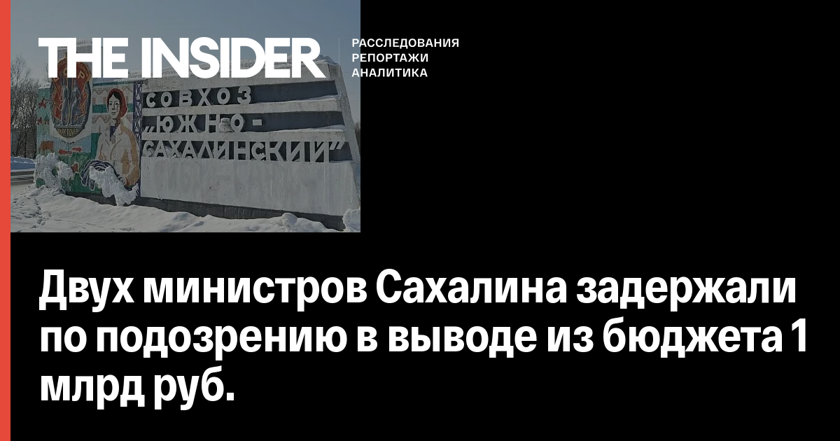 Двух министров Сахалина задержали по подозрению в выводе из бюджета 1 млрд руб.