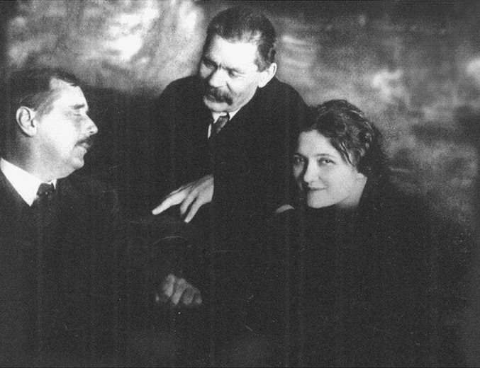 Горький, Герберт Уэллс и Мария Будберг в квартире Горького на Кронверкском проспекте. Петроград, 1920 год
