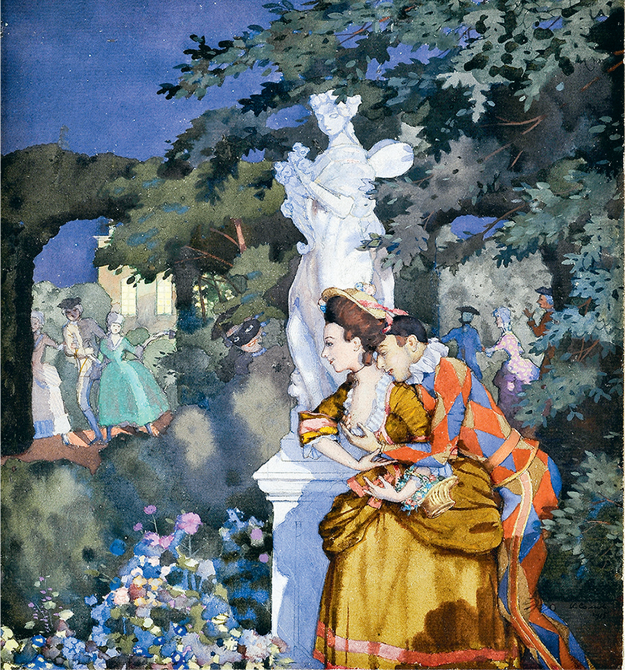 В перестроечные времена интерес к художникам «Мира искусства» (как и ко всему дореволюционному) возрос еще больше — в Петергофе появился музей Бенуа, стали переиздавать старые книжки, оформленные и написанные невскими пиквикианцами, перепечатывать их афиши и плакаты. Появились не только живописные работы Сомова, но и его графика, иллюстрации. Вспомнили про его эксперименты с фарфоровыми фигурками. Сомов оказался далеко не только певцом потерянного рая, но и большим художником. Во многом благодаря его биографу и исследователю Галине Ельшевской, написавшей фундаментальную (несмотря на название) «Короткую книгу о Константине Сомове», он вернулся в искусствоведческий дискурс из сугубо ностальгического и культурологического. О нем снова заговорили как о мастеровитом живописце, занимавшем строго определенную и оригинальную позицию: пассивного, отвлеченного наблюдателя. Художник снова стал художником, а не затейником, денди, героем времени.
