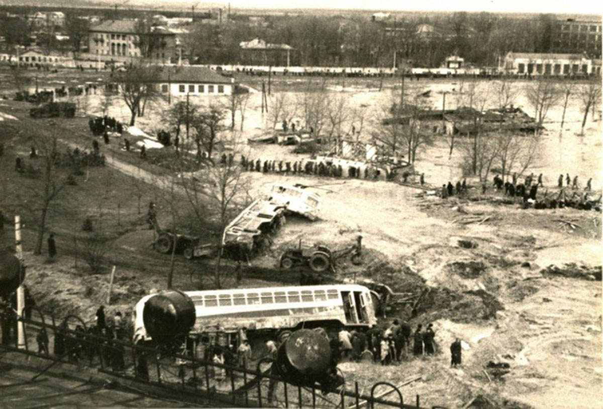 Затем на пути грязевой волны оказалось трамвайное депо имени Фрунзе (сейчас — Подольское). Потоп снес четырехэтажное здание управления и полностью уничтожил трамвайный парк. Сотрудники не получили вовремя команду отключить электричество, многие из них погибли от поражения током.