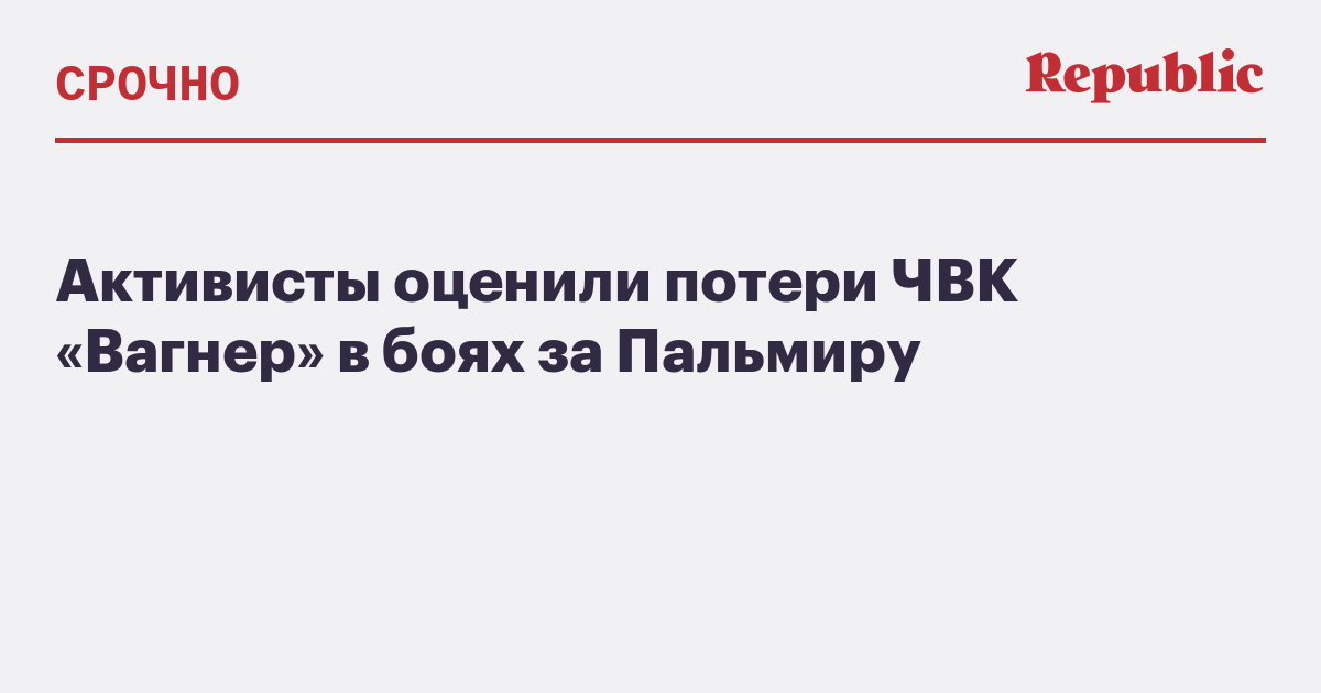 Активисты оценили потери ЧВК «Вагнер» в боях за Пальмиру