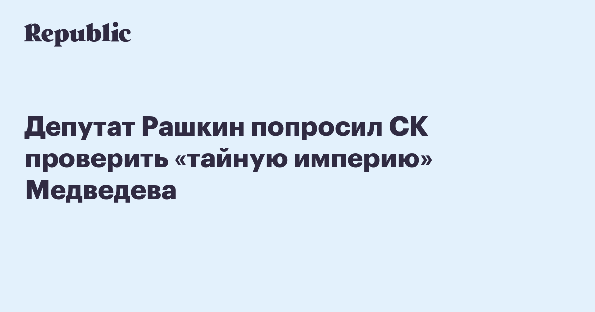 Депутат Рашкин попросил СК проверить «тайную империю» Медведева