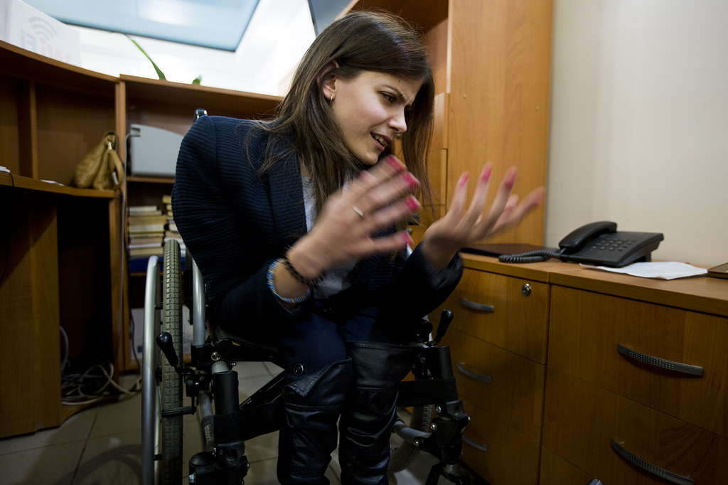 Я в спектакле танцую с Алексом, сейчас мы как раз репетируем финальную версию. До этого танцевала, когда участвовала в конкурсе красоты. Вообще, весь театр начался с этого конкурса красоты. Там было задание по актерскому мастерству, с нами занималась режиссер Елена Телегина, и я загорелась. То есть я всегда хотела в театральном учиться, играть в театре. Но возможности не было, и я не знала, что можно бесплатно этому учиться. Как мне казалось, для людей с ограниченными возможностями это закрытая возможность, вообще никак. Но мне сказали, что Оля Стволова, которая организовала конкурс, занимается еще и театральной студией, я обратилась к ней и стала «особенным типом».