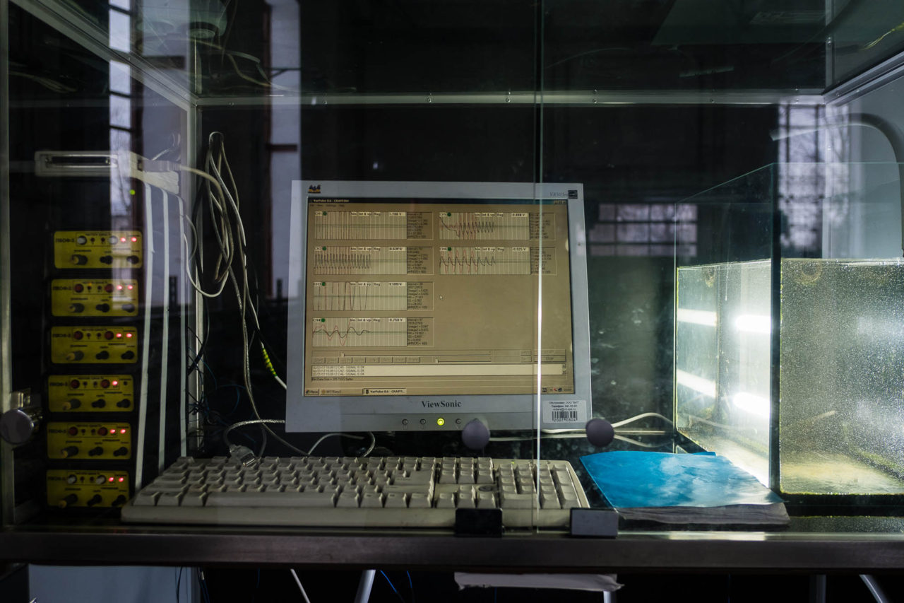 Если сработает красный сигнал — это гиперчрезвычайная ситуация, ужасная катастрофа«Когда биомониторинг только внедряли, как ученые нас ни уверяли в эффективности метода, определенный скепсис был», — признает Портнова. В первый год работы раков в апреле — а это самый паводковый период, — я обратила внимание на поведение рака в аквариуме. Не было даже желтого уровня тревоги, то есть загрязнение было минимальным от обычного, но чувствовалось, как ему, бедному, не комфортно. Нет сомнения, что в случае мгновенного загрязнения животные отреагируют».