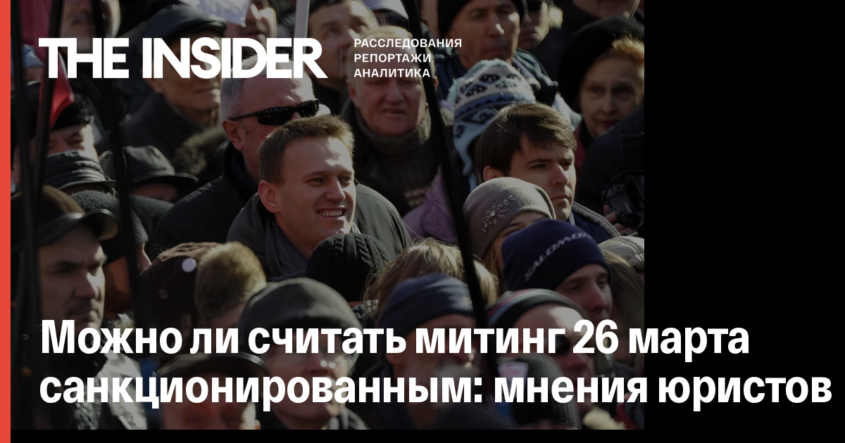 Мэрия Москвы предложила оппозиционеру Алексею Навальному альтернативную площадку для митинга против коррупции среди высших чиновников. В мэрии решили, что митинг можно провести в Марьино или Сокольниках. Навальный не согласился с этим решением и заявил, что раз альтернативные варианты были предоставлены с опозданием, то они не имеют законной силы. The Insider попросил юристов объяснить, можно ли будет считать митинг 26-го марта санкционированным, если он все же состоится вопреки предостережениям полиции.