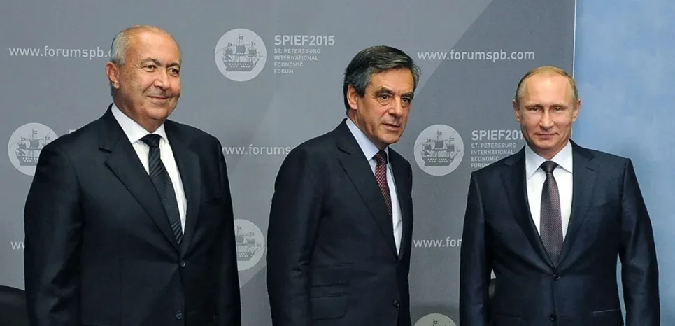 Контракт между Фийоном и миллиардером Махзуми был заключен 10 июня 2015 года, а уже через девять дней оба господина фотографировались на фоне Путина в Петербурге, где проходил известный экономический форум.
